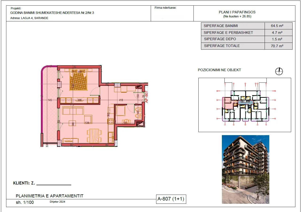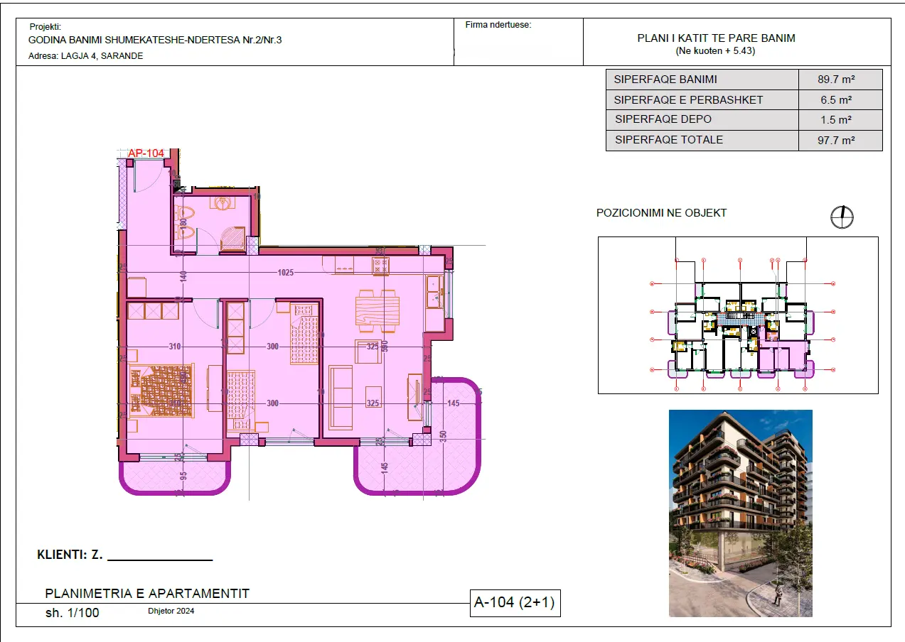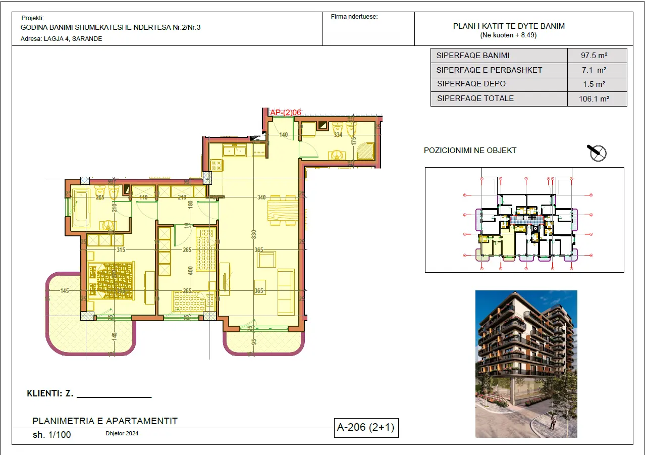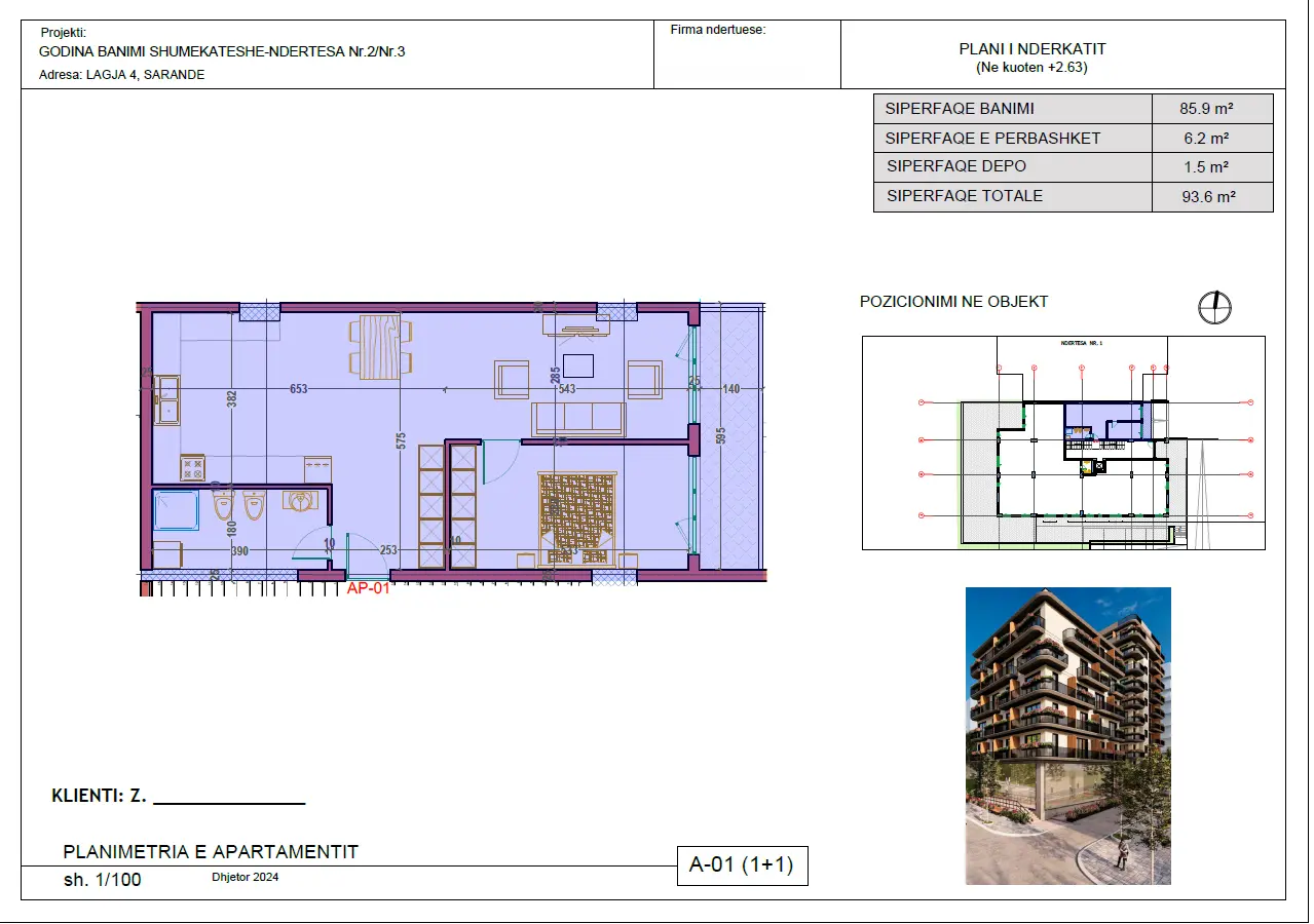 Ky projekt i ri prestigjioz, ofron një kombinim unik të dizajnit modern, cilësisë së ndërtimit dhe vendndodhjes strategjike – vetëm pak hapa larg detit dhe qendrës së gjallë të Sarandës.