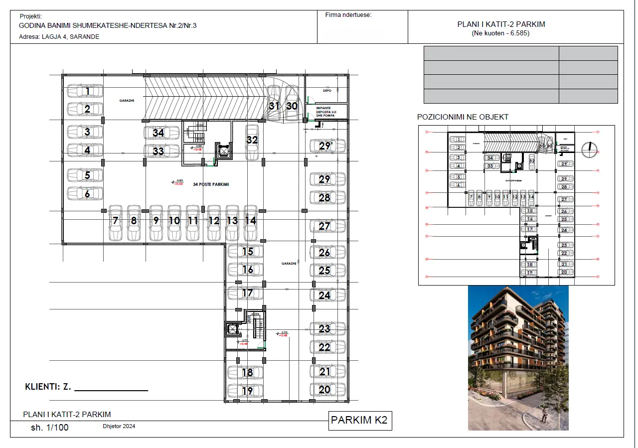 - Komoditete Shtesë: Harrojini shqetësimet e parkimit! Projekti përfshin dy kate parkimi nëntokësor (K1 & K2), duke siguruar hapësirë të sigurt për automjetin tuaj. Gjithashtu, dispononi dhe hapësira të dedikuara magazinimi ('Depo') për çdo apartament, duke ju ofruar hapësirë shtesë shumë të nevojshme.