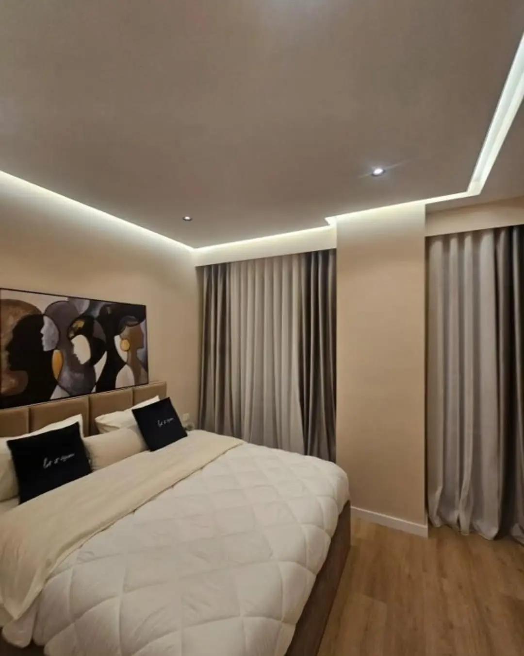 - Hapësirë e bollshme** me 2 dhoma gjumi, një sallon elegant me kuzhinë të integruar dhe një tualet.